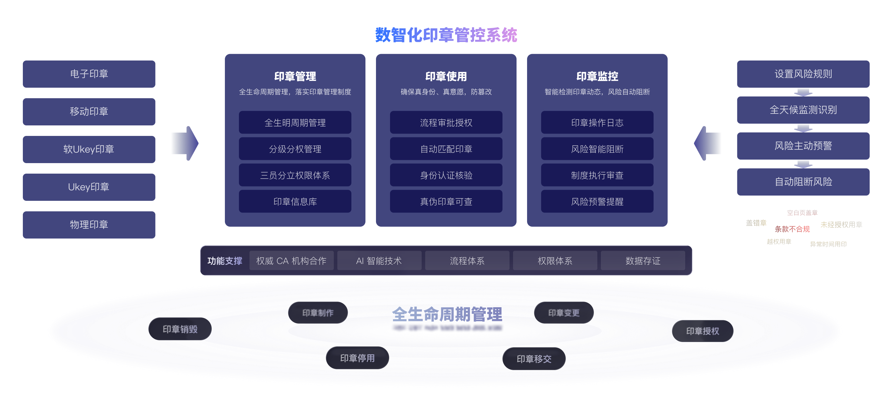 印章制度智能审查 印章风险自动阻断 印章全周期管理 电子章实体章统一管 集团分级分权管理